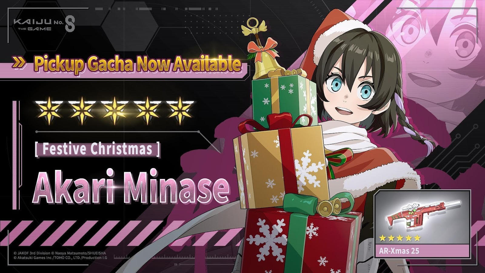 Akari Minase is joining Santa Narumi in the Kaiju No.8 THE GAME festive event. Minase, who is the first 5-star Fire Attacker, is coming with a new five-star weapon, the AR-Xmas (Assault Rifle).