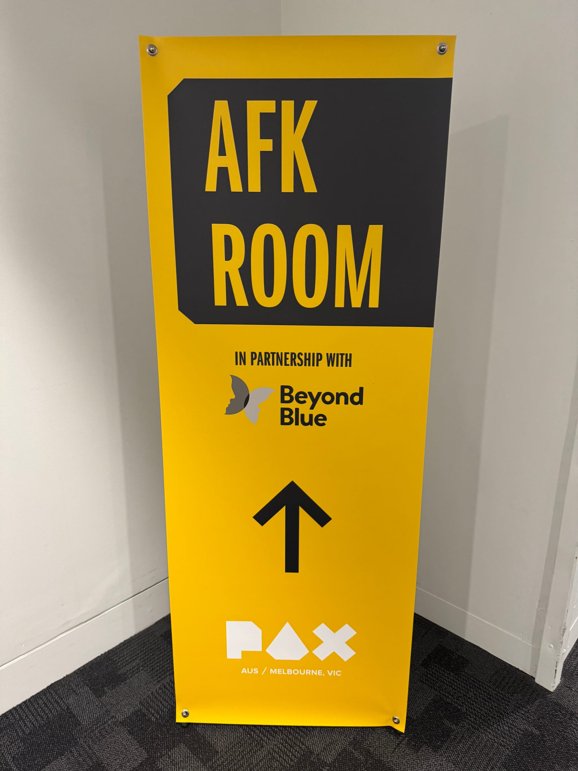 The AFK (Away From Keyboard) break room returned to PAX Aus this year, supported by the Beyond Blue mental health organization. Respectfully, we chose not to take photographs, but we found the area comfortable, albeit already overcrowded just a few hours into the event. The AFK space featured dimmed lighting and craft tables; however, the chosen spot was upstairs and frustrating to access.